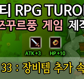 unity 썸네일형 리스트형 [유니티 강좌] 2D RPG 쯔꾸르 제작하기 Part 40 (完) : 엔딩 크레딧 유니티로 쯔꾸르 제작하기 Part 40 엔딩 크레딧 #알만툴 #쯔꾸르 #유니티 강좌 #RPG 제작 #초보도 쉽게 따라할 수 있는 : 이번 강좌의 목표 : 엔딩 크레딧 (스탭롤)을 만들어보자. 더보기 [유니티 강좌] 2D RPG 쯔꾸르 제작하기 Part 39 : 타이틀 구현 유니티로 쯔꾸르 제작하기 Part 39 타이틀 구현 #알만툴 #쯔꾸르 #유니티 강좌 #RPG 제작 #초보도 쉽게 따라할 수 있는 : 이번 강좌의 목표 : 게임 타이틀을 구현해보자! (새 시작, 불러오기, 게임 종료) 더보기 [유니티 강좌] 2D RPG 쯔꾸르 제작하기 Part 38 : 메뉴 구현 유니티로 쯔꾸르 제작하기 Part 38 메뉴 구현 #알만툴 #쯔꾸르 #유니티 강좌 #RPG 제작 #초보도 쉽게 따라할 수 있는 : 이번 강좌의 목표 : 게임 도중에 메뉴를 띄워보자. 저장과 타이틀로, 혹은 게임 종료를 할 수 있는 간단한 메뉴 구현. 더보기 [유니티 강좌] 2D RPG 쯔꾸르 제작하기 Part X : 인벤토리 페이지 시스템 유니티로 쯔꾸르 제작하기 Part X 인벤토리 페이지 시스템 #알만툴 #쯔꾸르 #유니티 강좌 #RPG 제작 #초보도 쉽게 따라할 수 있는 : 이번 강좌의 목표 : 인벤토리 심화 과정 페이지 시스템을 만들어보자. 아이템 최대 슬롯을 넘어가면 생기는 오류. 페이지 방식으로 해결해보자! 더보기 [유니티 강좌] 2D RPG 쯔꾸르 제작하기 Part 37 : 세이브와 로드 유니티로 쯔꾸르 제작하기 Part 37 :세이브와 로드 #알만툴 #쯔꾸르 #유니티 강좌 #RPG 제작 #초보도 쉽게 따라할 수 있는 : 이번 강좌의 목표 : 게임의 진행과정을 전부 기록하고 불러올 수 있는 저장과 불러오기 기능을 구현해보자. - 본 강좌의 소스 파일 더보기 [유니티 강좌] 2D RPG 쯔꾸르 제작하기 Part 36 : 적 체력바 구현 유니티로 쯔꾸르 제작하기 Part 36 적 체력바 구현 #알만툴 #쯔꾸르 #유니티 강좌 #RPG 제작 #초보도 쉽게 따라할 수 있는 : 이번 강좌의 목표 : HP 상태를 보여주는 UI를 구현해보자. 더보기 [유니티 강좌] 2D RPG 쯔꾸르 제작하기 Part 35 : HUD 구현 유니티로 쯔꾸르 제작하기 Part 35 HUD 구현 #알만툴 #쯔꾸르 #유니티 강좌 #RPG 제작 #초보도 쉽게 따라할 수 있는 : 이번 강좌의 목표 : HP와 MP의 상태를 보여주는 HUD를 구현해보자. 본 강좌에 필요한 이미지 소스 더보기 [유니티 강좌] 2D RPG 쯔꾸르 제작하기 Part 34 : 무기 공격 모션 유니티로 쯔꾸르 제작하기 Part 34 무기 공격 모션 추가 #알만툴 #쯔꾸르 #유니티 강좌 #RPG 제작 #초보도 쉽게 따라할 수 있는 : 이번 강좌의 목표 : 장비 아이템, 칼의 공격 모션을 추가해보자.(창, 도끼는 응용해서 사용가능) 더보기 [유니티 강좌] 2D RPG 쯔꾸르 제작하기 Part 33 : 장비템 추가 속성 유니티로 쯔꾸르 제작하기 Part 33 장비창 추가속성 #알만툴 #쯔꾸르 #유니티 강좌 #RPG 제작 #초보도 쉽게 따라할 수 있는 : 이번 강좌의 목표 : 장비템에 추가 속성을 만들고,장비템을 장착하면 플레이어스탯에 반영되도록 만들어보자. + 장비창에서 플레이어 스탯 일부 보여주기. 더보기 [유니티 강좌] 2D RPG 쯔꾸르 제작하기 Part 32 : 장비창 유니티로 쯔꾸르 제작하기 Part 32 장비창 구현 #알만툴 #쯔꾸르 #유니티 강좌 #RPG 제작 #초보도 쉽게 따라할 수 있는 : 이번 강좌의 목표 : 인벤토리와 연동되는 장비창을 만들자. + 인벤토리 창에서 장비를 장착할 수 있게 만들고,장비창에서 장비를 벗을 수 있게 구현해보자. 본 강좌의 소스코드. Part 32~33에 필요한 장비창 UI 더보기 이전 1 2 3 다음